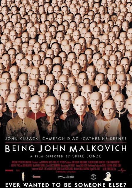 Being John Malkovich (Spike Jonze, 1999) wr. Charlie Kaufman; John Cusack, Cameron Diaz, Catherine Keener, John Malkovich